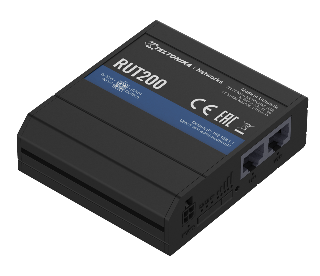 El modelo RUT300 es un router industrial con 5 puertos Ethernet 10/100BaseTX, 1 entrada digital y 1 salida digital y un interfaz USB2.0. Puede utilizarse como terminador de VPN o para acceso seguro y remoto a equipos detrás de él a través de la plataforma RMS de Teltonika.
